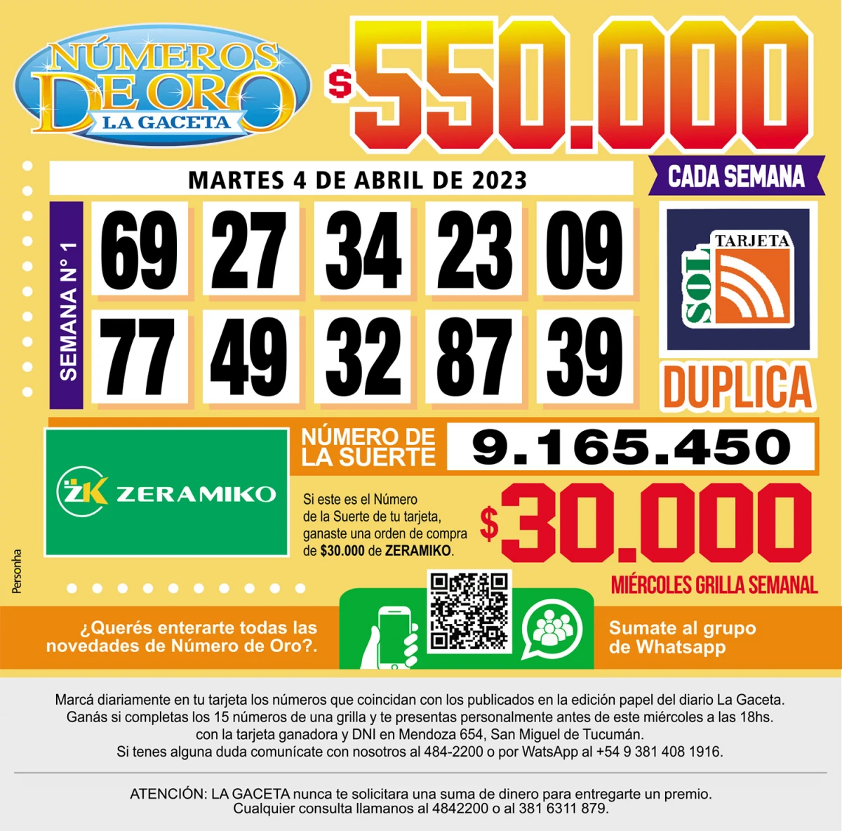 Los Números de Oro de LA GACETA del 4 de abril de 2023