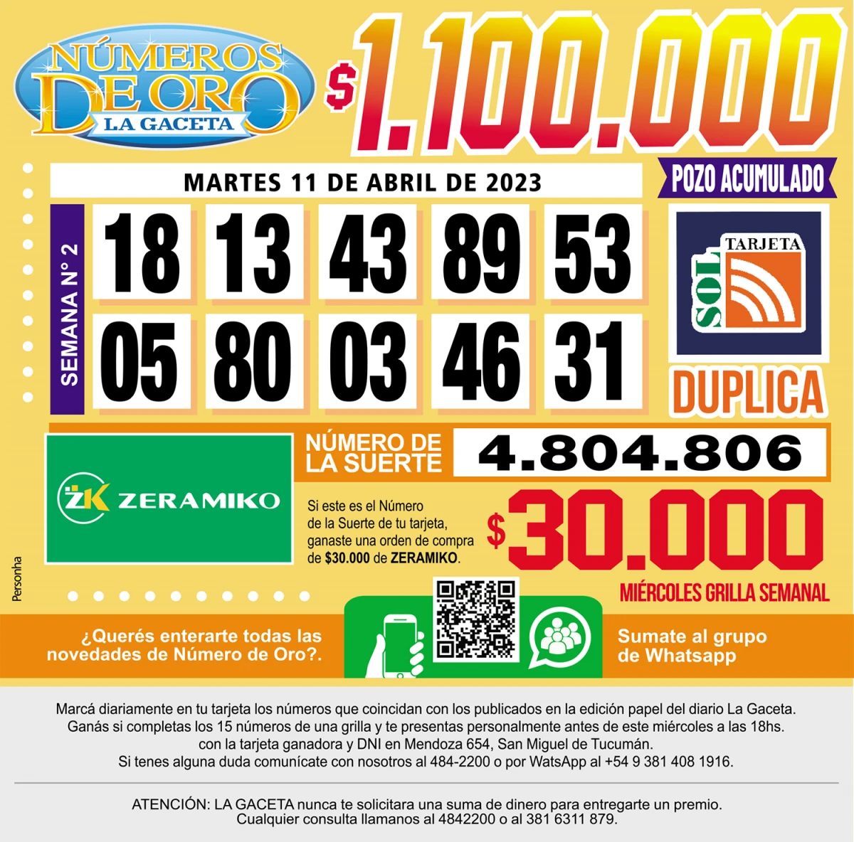 Los Números de Oro de LA GACETA del 11 de abril de 2023