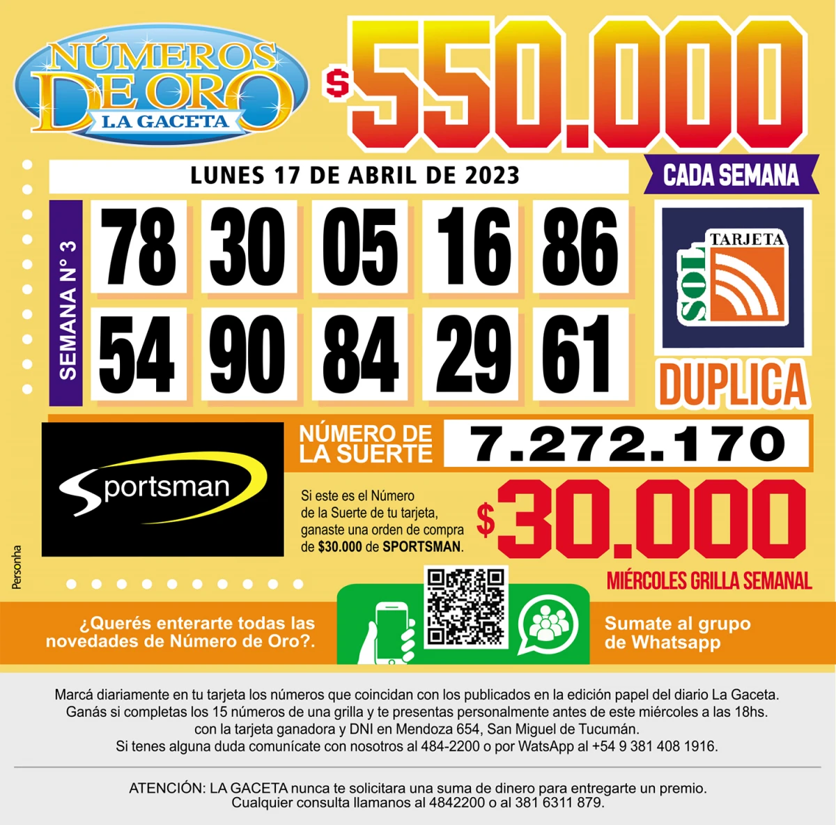 Los Números de Oro de LA GACETA del 17 de abril de 2023
