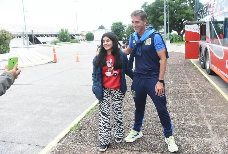Mientras el ayudante de campo Claudio Úbeda esperaba a Miguel Russo al lado del ómnibus, el fanático Néstor Correa, de 28 años, y su hermana Valentina se acercaron para pedirle amablemente unas fotos (a la derecha). “Es la primera vez que los veo de cerca a los jugadores. Siempre fue por la tele y es una alegría enorme tenerlos aquí. Había unos jugadores de la Reserva que eran amigos míos y gracias a ellos empecé a simpatizar”, indicó Correa.