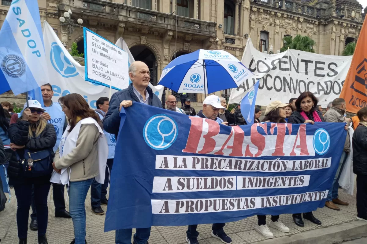 El Sindicato Argentino de Docentes Privados (Sadop) protesta en la plaza Independencia para reclamar una mejora salarial en los colegios y contra la precarización laboral.