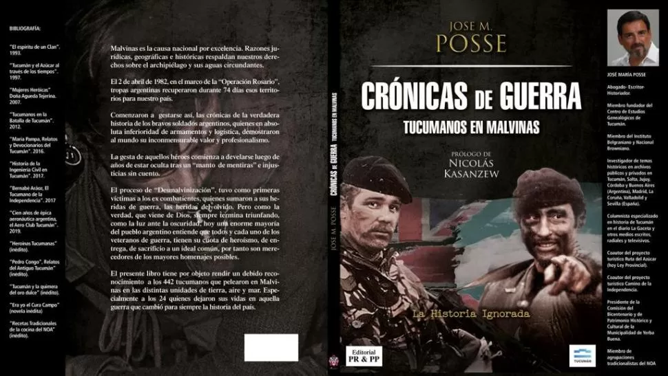 Ingratitud. Indiferencia. Olvidados por la sociedad. Y aunque han transcurrido cuatro décadas, hay heridas que no logran cicatrizar. “Crónicas de Guerra: Tucumanos en Malvinas. La historia ignorada” es justamente un intento de homenajear a aquellos que ofrendaron al país su coraje, arriesgando su pellejo, en un conflicto bélico contra Gran Bretaña, que tuvo lugar en el Atlántico Sur. “Es un libro en homenaje a ellos, a los ex combatientes, no a la guerra ni mucho menos. Se ha hecho realidad el sueño de poderlo editar y tiene una serie de particularidades muy interesantes porque es una compilación de una serie de notas que les fui haciendo a distintos soldados y oficiales tucumanos que participaron en Malvinas de las tres fuerzas. Y me salió algo grande, estamos hablando un libro de 334 páginas con ilustraciones y fotografías, algunas de ellas inéditas. Muchos de los que están en el libro, primera vez que hablan, han tardado 40 años en dar su testimonio y eso tiene un significado muy grande para mí”, explica José María Posse, abogado, escritor e historiador, cofundador del Centro de Estudios Genealógicos de Tucumán, y autor de “Bernabé Aráoz. El tucumano de la Independencia”, entre otros libros.
