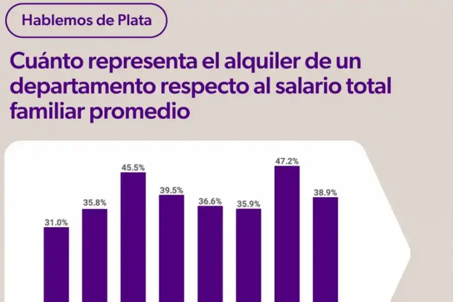 Según la consultora, una familia argentina promedio destina alrededor de un tercio de sus ingresos (32,4%) a pagar el alquiler de un departamento de un ambiente en CABA y casi la mitad un (47,1%) en Santa Fe, considerando ingresos totales promedios al mes de $ 246.238 y $ 159.151, respectivamente. Para este análisis se consideró el ingreso total familiar promedio de cada aglomerado urbano analizado en base a la Encuesta Permanente de Hogares del Instituto Nacional de Estadísticas y Censos (Indec) y ajustados por índice de salarios.