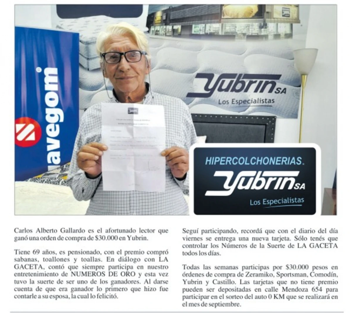 Carlos Alberto Gallardo ganó una orden de compra de $ 30.000 en Yubrin