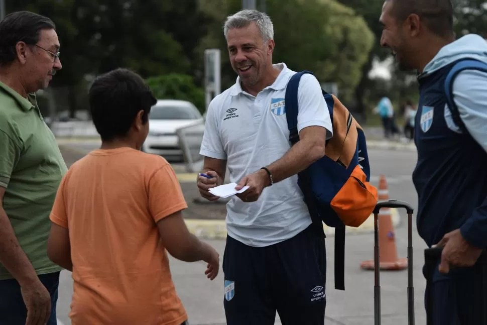 Con una sonrisa, Lucas Pusineri fue el último en llegar al aeropuerto en la tarde de ayer. Lo hizo acompañado por Matías Villavicencio alrededor de las 18.20, una hora antes del viaje a Buenos Aires. Luego de firmarle un autógrafo a un niño que lo esperaba, el DT charló con LA GACETA sobre los promedios y el partido de esta noche con Tigre.
