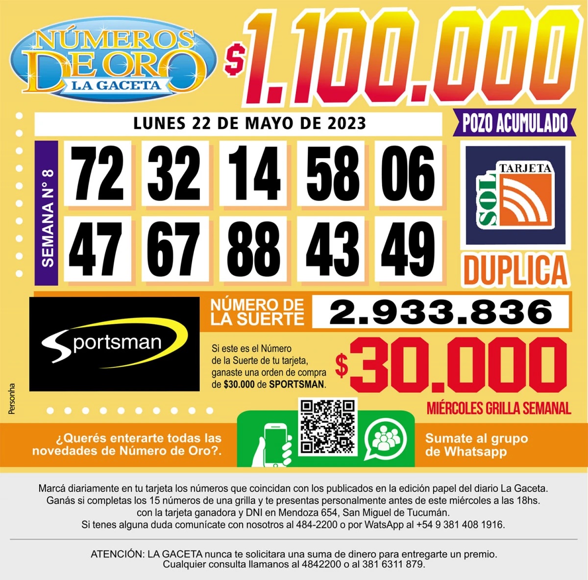 Los Números de Oro de LA GACETA del 22 de mayo de 2023