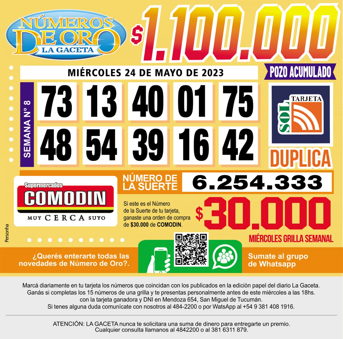 Los Números de Oro de LA GACETA del 24 de mayo de 2023