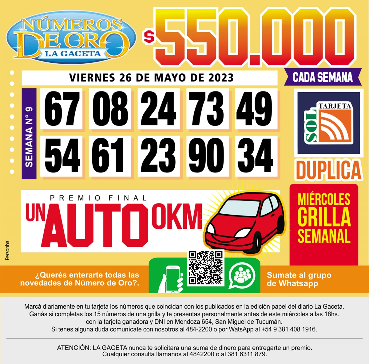 Los Números de Oro de LA GACETA del 26 de mayo de 2023