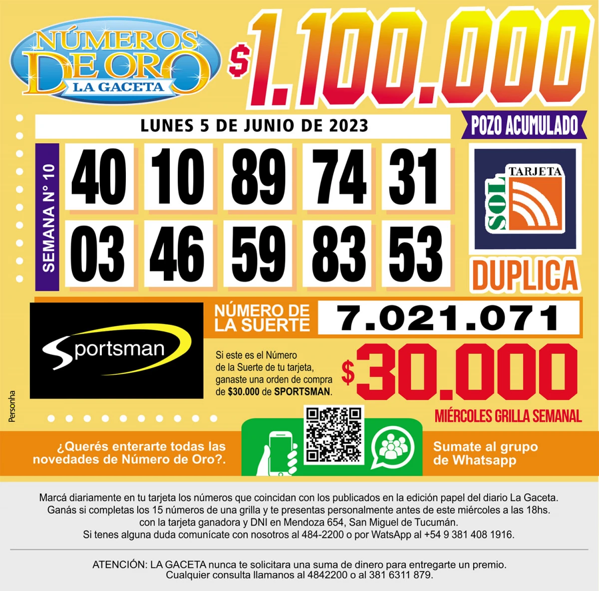 Los Números de Oro de LA GACETA del 5 de junio de 2023