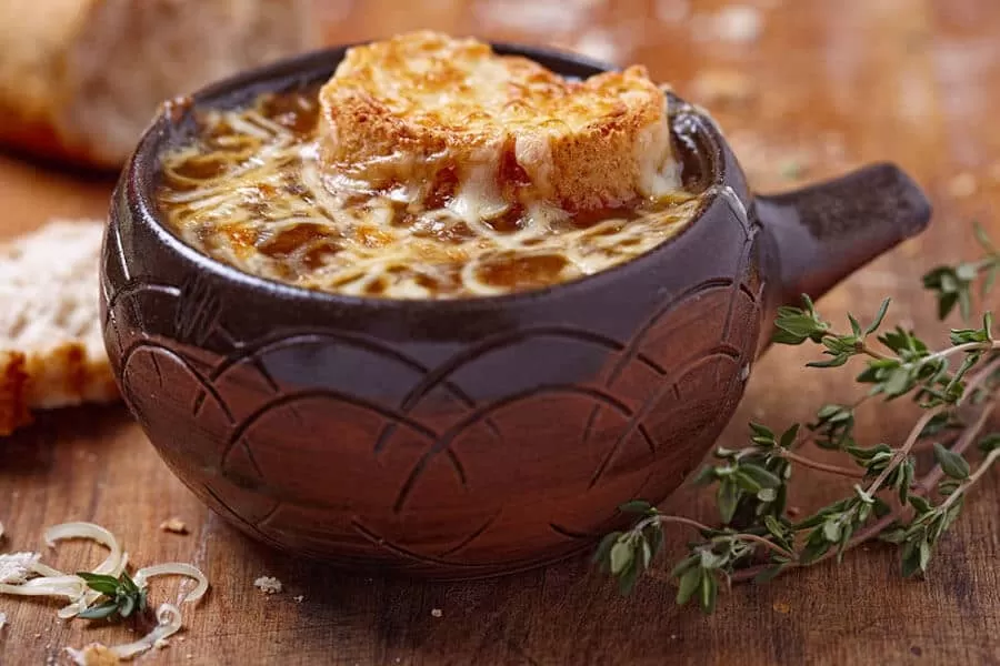 Los primeros antecedentes de esta preparación se remontan a la edad media. Sin embargo, su mayor perpetuación se dio en Francia en el siglo XIX; desde allí se dispersó por el mundo, como reguero de pólvora. Cocinar esta sopa en casa es muy fácil. Sólo necesitas 1 litro de agua, 250 ml de vino blanco, 4 cebollas, 50 g de manteca, 100 gr de queso rallado, un pan francés o baguette, Además, vas a ocupar aceite de girasol, 2 cucharadas de harina y sal y pimienta negra a gusto. El tiempo de cocción es largo: cuando tengas todos los ingredientes, tenés que cortar las cebollas en juliana, agregar 30 gr de manteca en una olla con aceite vegetal y saltear las cebollas durante 15 minutos a fuego lento. Después agregás la harina, el vino blanco y el agua y seguís revolviendo 30 minutos a fuego bajo. Mientras tanto, cortá el pan en rodajas, untalas con manteca y envialas al horno por 10 minutos de cada lado. Y luego, a preparar todo: poné cada porción en un plato, agregá las rodajas de pan y un poco de queso rallado. ¡A disfrutar!