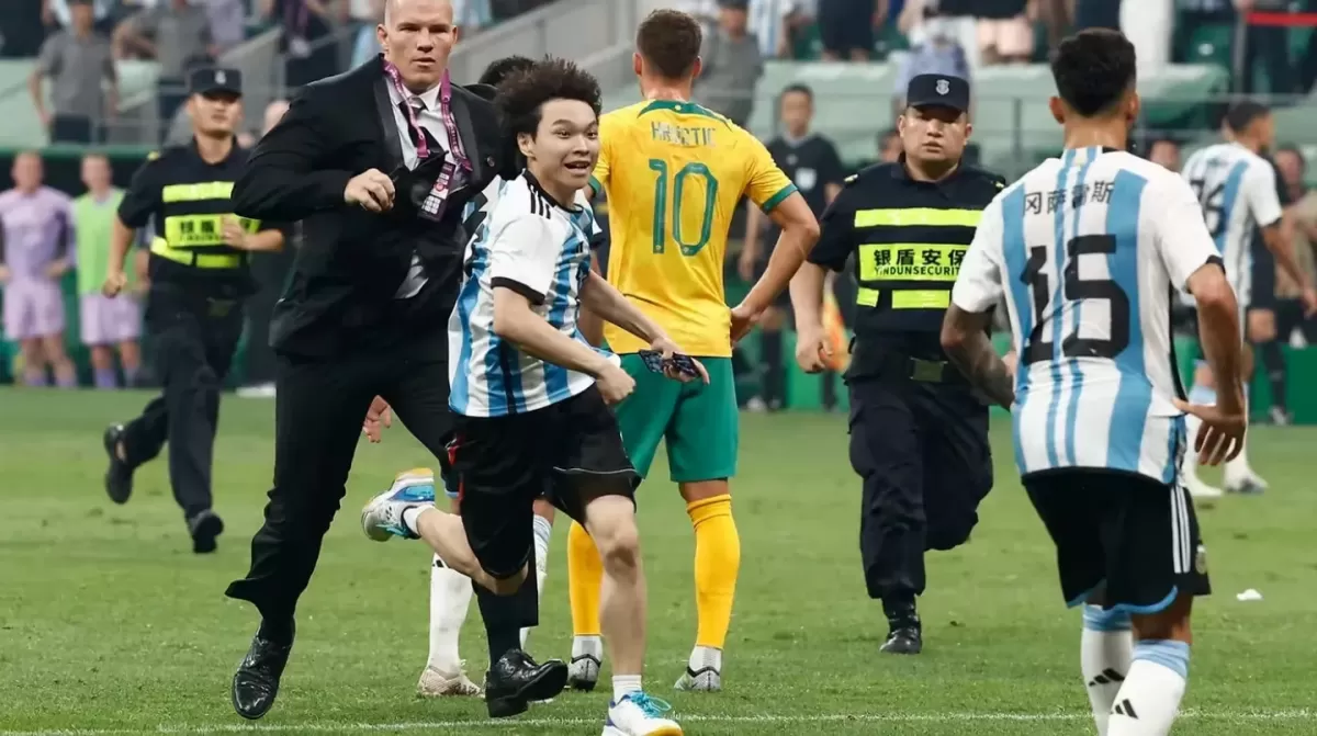 El fanatismo por Lionel Messi no tiene límites y muchos fueron los hinchas que invadieron las canchas para tomarse una foto o abrazar al capitán de la Selección argentina. Solo fue uno el que lo hizo en el medio del partido frente a Australia, captando la atención de todos. Se trató de un fanático chino que saltó al campo de juego durante el segundo tiempo y, poco después fue atrapado por la seguridad del recinto.
