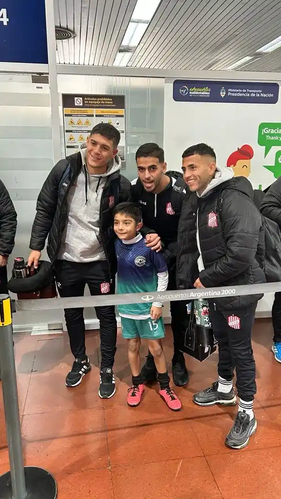 Tras disfrutar unos cafés en el bar del aeropuerto, los jugadores se pusieron en la fila del preembarque. Varios hinchas aprovecharon para sacarse fotos con ellos; y uno de los más buscados fue Brian Andrada. Antes de pasar a la sala de embarque, el ex Gimnasia de Mendoza, junto a Nahuel Banegas y Agustín Colazo, posó con un niño -foto del medio-. “Vamos los ‘santos’ que mañana hay que ganar”, les dijo el papá luego de agradecerles.