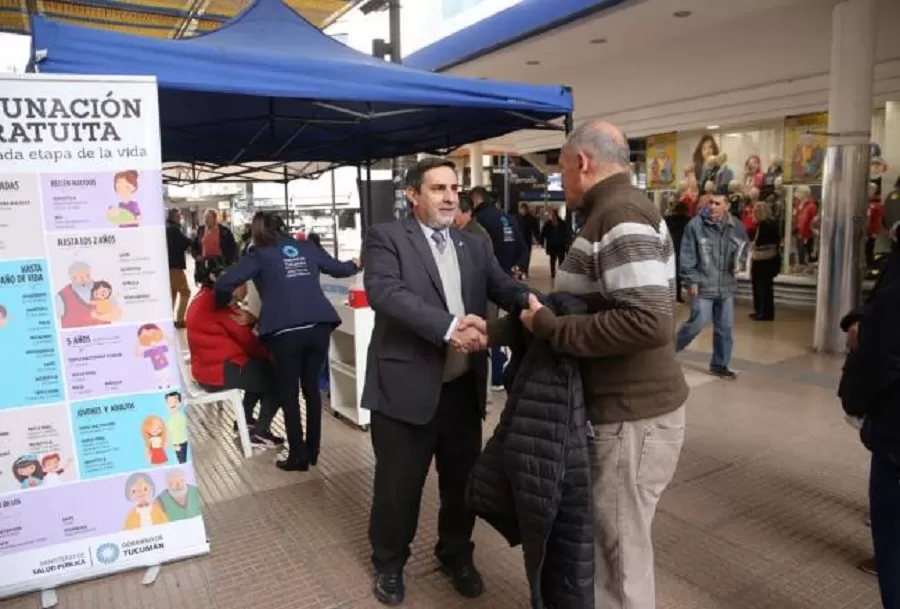 El ministro de Salud Pública, doctor Luis Medina Ruiz, visitó el nuevo puesto sanitario ubicado en el microcentro tucumano, donde desde ahora la comunidad puede recibir vacunas de calendario, contra COVID, gripe y neumonía.