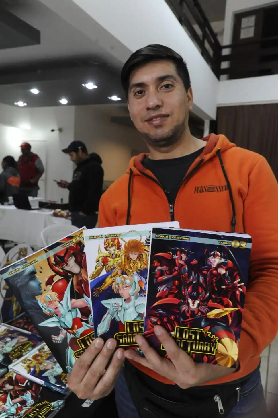 La historia se ubica 40 años después de los sucesos narrados en los mangas; dentro de un futuro postapocalíptico. Los diferentes tomos de esta nueva historia aparecen enumerados sobre su mesa. “Los capítulos fueron recopilados en papel, pero si no es posible leer la obra en formato digital. Estoy orgulloso porque hubo gente de México, Chile, Brasil y España que adquirió mi publicación. También tengo patrocinadores que me ayudan con este proyecto. Cómo obsequio, ellos pueden elegir el nombre de algún caballero que quieran que aparezca y sus rasgos físicos”, detalla el mangaka.