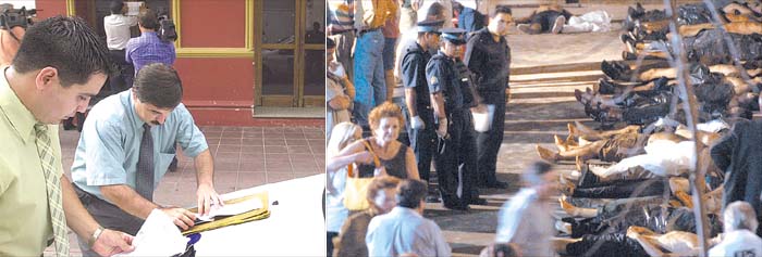 Inspectores municipales recorrieron algunos de los boliches de la capital para verificar si estaban aptos para abrir (foto izquierda). Familiares de las víctimas ingresan en una improvisada morgue para realizar el reconocimiento de los cadáveres. Inspectores municipales recorrieron algunos de los boliches de la capital para verificar si estaban aptos para abrir (foto izquierda). Familiares de las víctimas ingresan en una improvisada morgue para realizar el reconocimiento de los cadáveres.