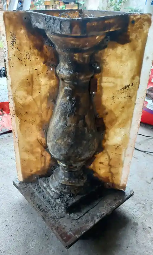 Las piezas muy deterioradas (30%) están siendo reemplazadas por nuevas. Los balaústres de reposición fueron realizados tomando como modelo una de las originales de cerámica, la cual se restauró para elaborar los moldes de siliconas, tarea que ha sido responsabilidad del escultor Pereyra y de su equipo.