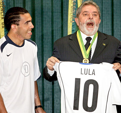 Es la primera vez que el presidente, que es consejero vitalicio de Corinthians, recibe en el palacio de gobierno a un campeón del fútbol brasileño. Y en un rápido encuentro, Lula bromeó con Tevez por su llamativo corte de cabello, pasando la mano por su cabeza, y subrayó el momento importante de la relación entre Brasil y Argentina.