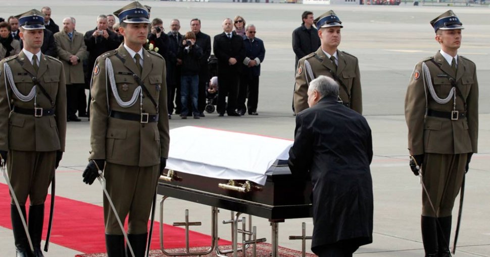 El presidente en funciones, Bronislaw Komorowski, y el primer ministro, Donald Tusk, recibieron los restos del mandatario, que viajaron en un ataúd en un avión militar y tras una breve ceremonia religiosa, fue trasladado al palacio presidencial acompañado por una escolta militar.