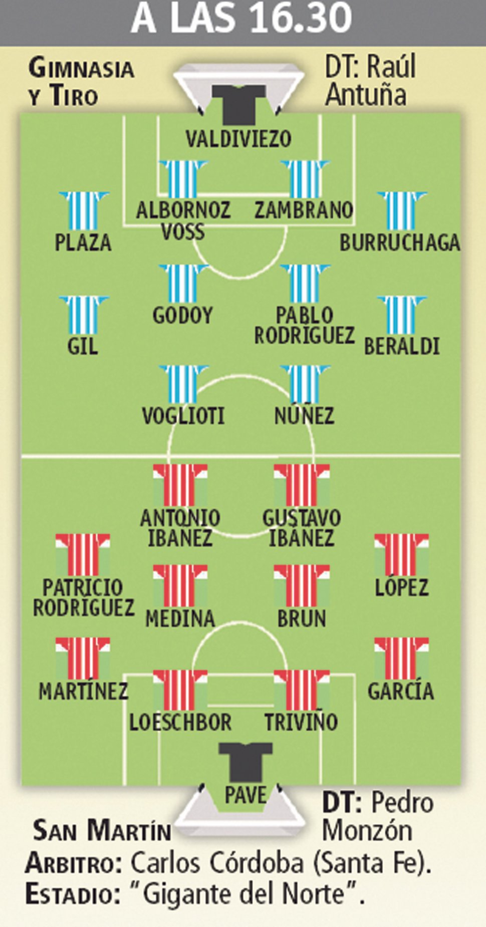 Fabián García retornará a la titularidad en lugar de Jorge Scolari, que fue expulsado en el encuentro frente a Central Norte. Mientras que en un cambio táctico, Germán Medina ingresará por Gustavo Balvorín. Esto hará que Antonio y Gustavo Ibáñez conformen la dupla atacante de los "santos".