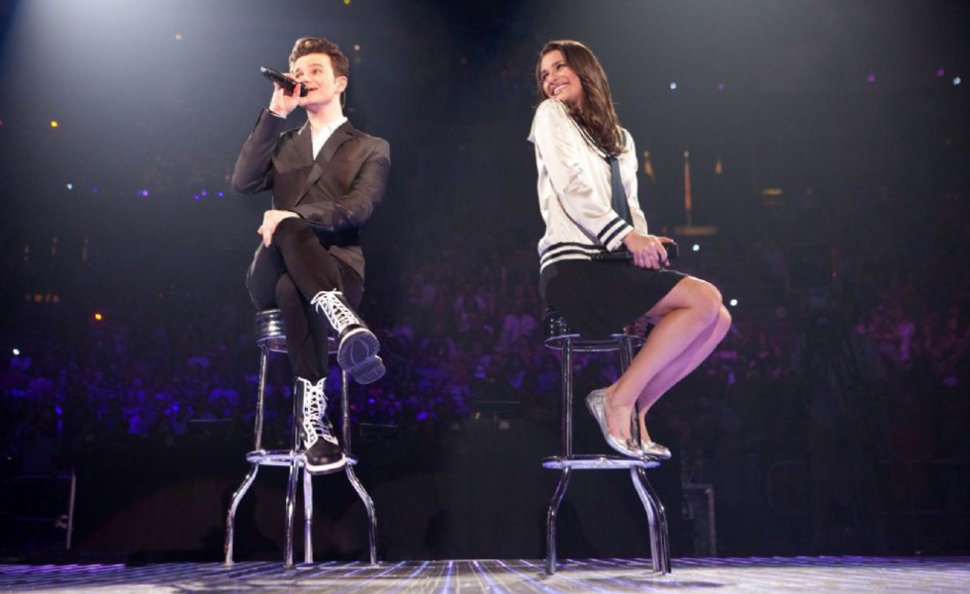 Los adorables perdedores de la escuela McKinley desfilan por el escenario del estadio Izod Center. Se alternan los solos, los duetos, las interpretaciones grupales y el baile, con una puesta de luces y el vestuario propios de un musical de Broadway.