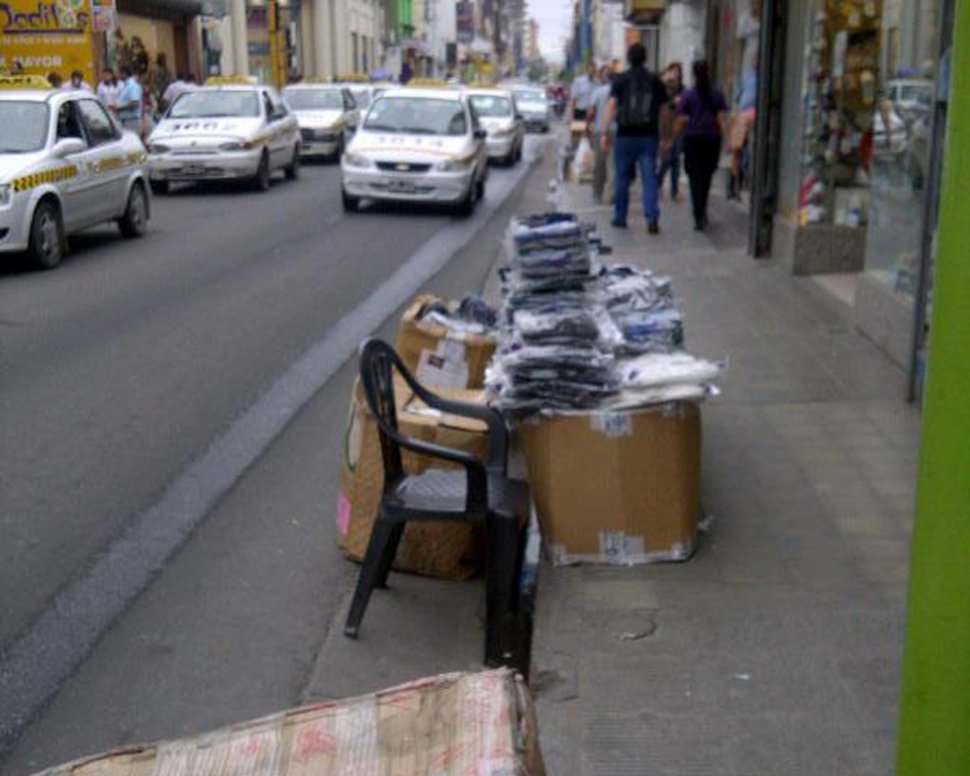 "De manera un vendedor ?ambulante? instala su ?mostrador? sobre el borde de las veredas angostas de Maipú al 200, dejando un lugar reservado para él: la calle. Es de suponer que el día que un vehículo arrolle a un ambulante recién entonces tomará cartas en el asunto la Municipalidad. Las fotos fueron tomadas la semana pasada".