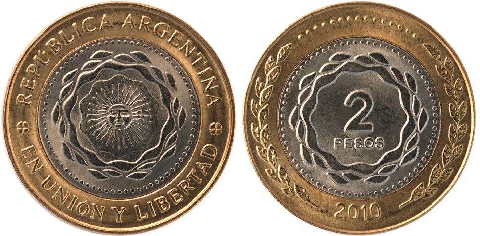 En cuanto a su diseño, en el núcleo del anverso presenta la identidad visual del Bicentenario Argentino, creado para la conmemoración por la Presidencia de la Nación, con la inclusión en su centro del sol. En el anillo, por su parte, se lee en el arco superior la leyenda "República Argentina" y, en el arco inferior, "En unión y libertad". El reverso de la moneda presenta en el núcleo el valor facial, "2 Pesos", enmarcado con la identidad visual del Bicentenario Argentino. En el arco inferior del anillo se observa el año de la conmemoración, "2010", completando el perímetro con laureles y perlado. Además, el canto de esta nueva moneda de $ 2 está conformado por cuatro secciones lisas y cuatro ranuradas, alternadas entre sí, para facilitar el reconocimiento al tacto por parte de personas con dificultades visuales.