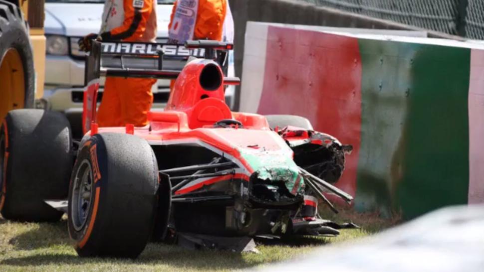 Bianchi fue trasladado al hospital después de sufrir un fuerte choque en el tramo final de la carrera en Suzuka. El piloto de 25 años se estrelló en la curva siete del circuito, al impactar con una grúa que trabajaba en apartar del trazado otro bólido accidentado, el Sauber del alemán Adrian Sutil.