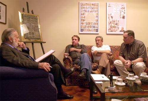 Visitaron al director de LA GACETA Literaria Daniel Alberto Dessein, el director del programa "Esta es mi tierra", Juan Manuel Martín de Blas, que se emite por Televisión Española S.A.; Angel F. Leñador de la Cruz, productor del mismo programa y Adolfo Dufour Andía, realizador y guionista. Todos los cuales estuvieron en Tucumán a fin de realizar las tareas de "localización" que preparan sobre nuestro comprovinciano, el escritor Tomás Eloy Martínez, que representa dentro de un conjunto de diez, cinco españoles y cinco latinoamericanos, a un muy alto exponente de la literatura argentina actual.