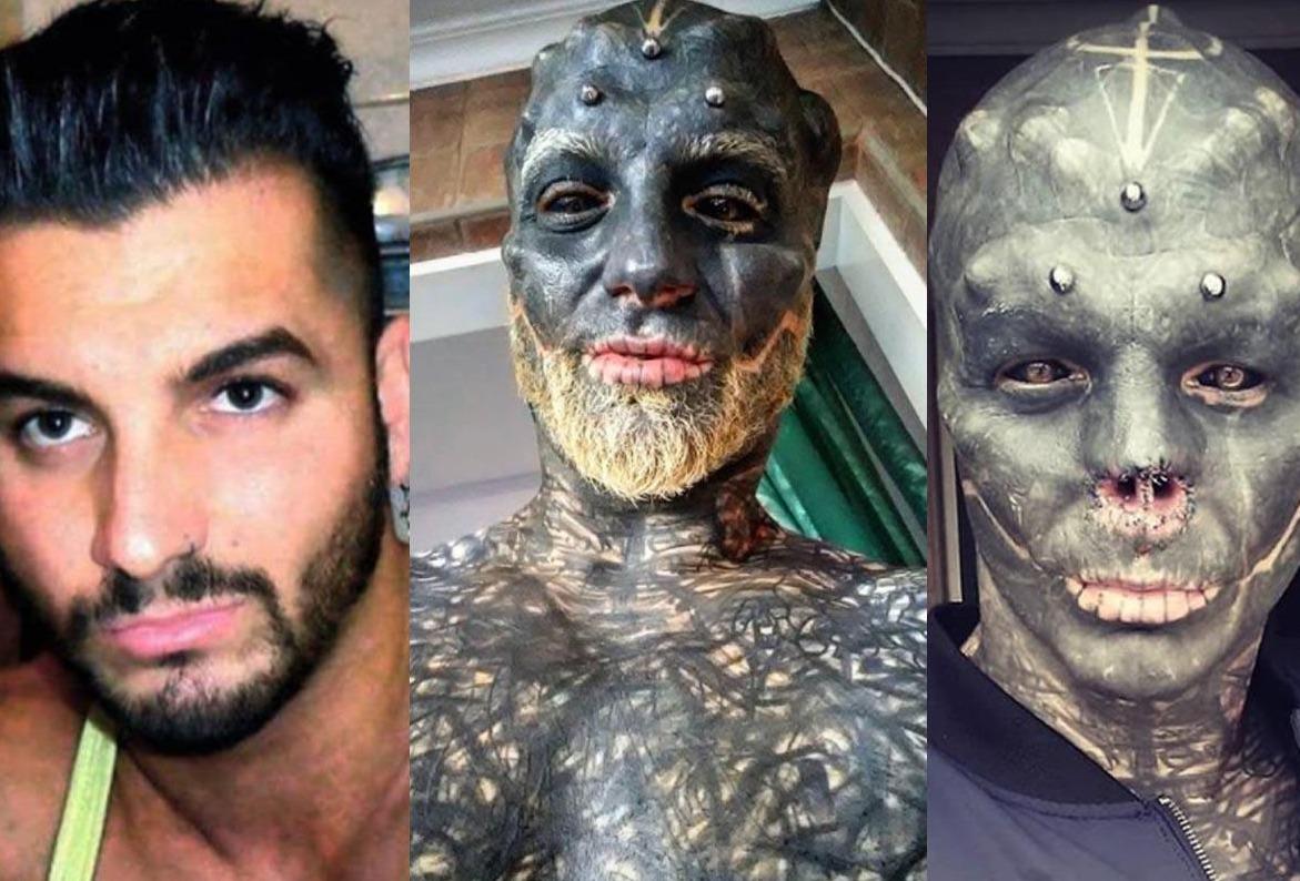 En esta mutación, que inició hace seis años, Anthony Loffredo se sometió a numerosas intervenciones quirúrgicas que incluyeron mutilaciones, tatuajes, cortes, implantes y amputaciones. También conocido como "The black alien", el joven tiene implantes bajo la piel, su lengua es bífida y de color verde, se tatuó todo su cuerpo, su nariz y orejas están cortadas, medio labio superior fue retirado y los dientes fueron afilados. También se amputó algunos dedos y programó cortarse una pierna, para colocarse una prótesis robótica y seguir "evolucionando".
