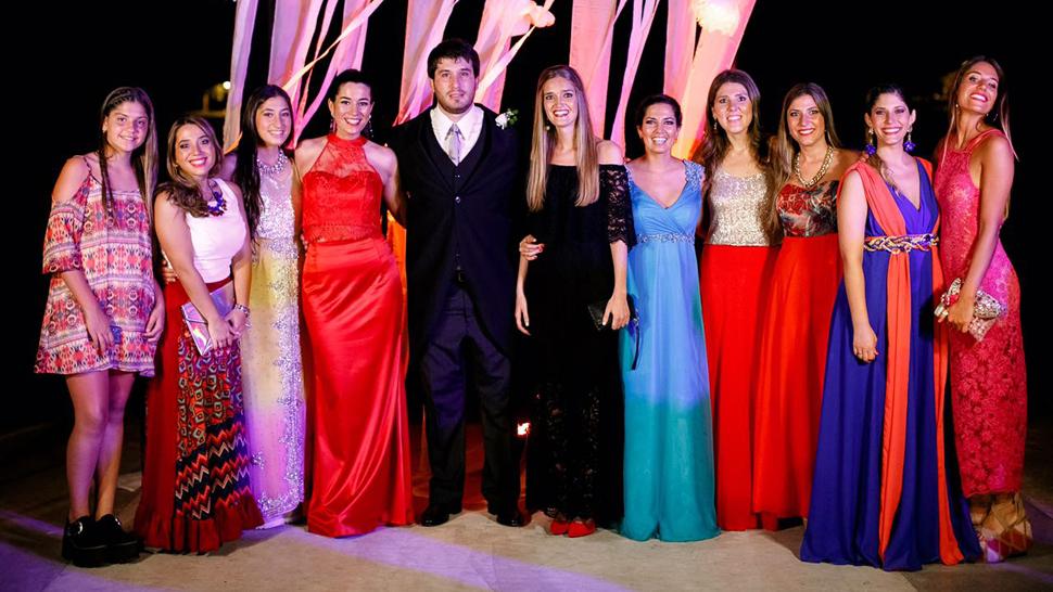 Augusto Max, Leonel Guerrero, Juan Manuel Bessone, Germán Pappalardo, Benjamin Dumit, Alberto Cabello, Santiago Palacios, Fernando Morán, Lucas Figueroa, Pablo Rea, Facundo Ferullo, Daniel Gothie, Roberto Álvarez, Maximiliano Tolaba, Fernando Corbalán, Ignacio Velardez, Facundo Pedraza, Javier Escaño, Pablo Palacios, Mauro Bazzano, Gonzalo Gubiani, Guillermo Palacios, los novios, Franco Espín, Cristian Jacabo y Santiago Valle Bazzi. (Amigos del novio)